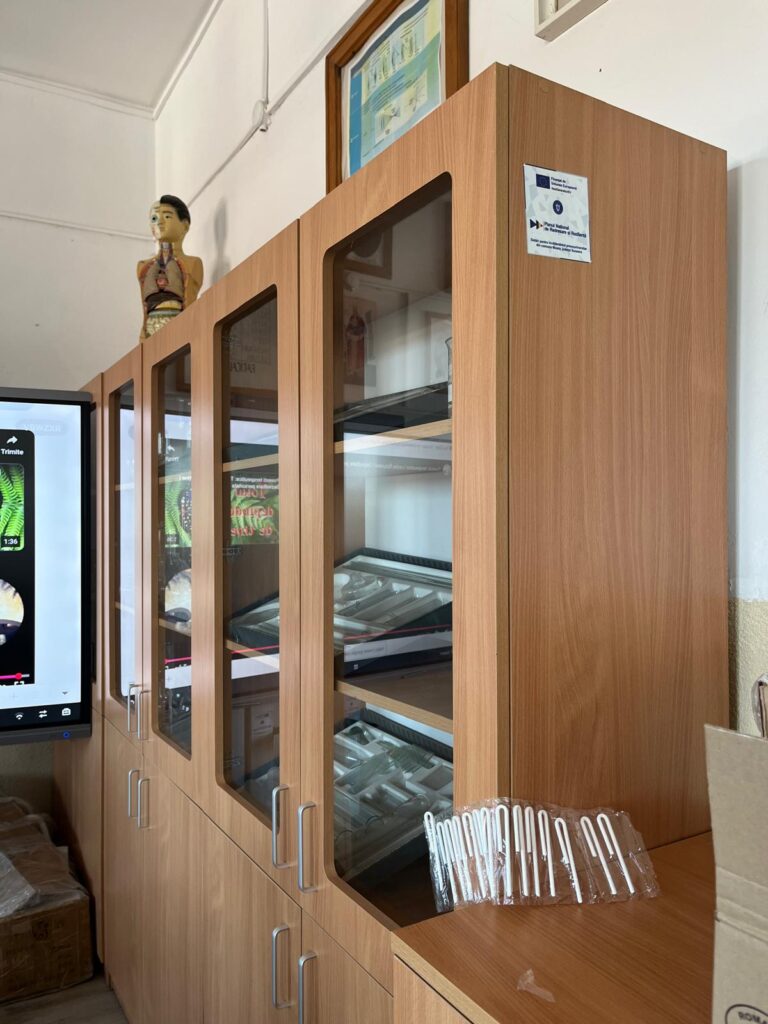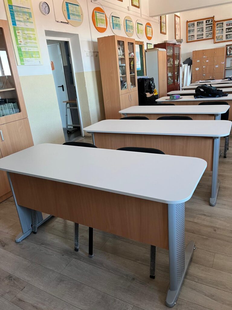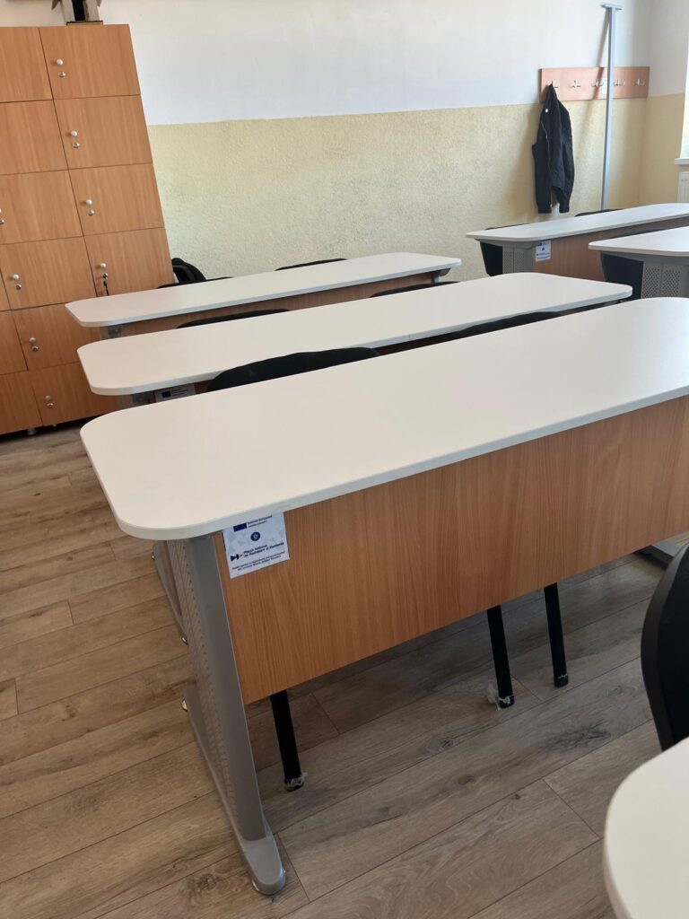 • Dotarea cu mobilier a 21 Sali de clasa, 1 un laborator de stiinte multidisciplinar, 1 cabinet scolar, dotarea cu echipamente digitale pentru 1 laborator de informatica si dotarea cu echipamente TIC a 20 Sali de clasa, 1 laborator de stiinte multidisciplinar si un cabinet scolar.