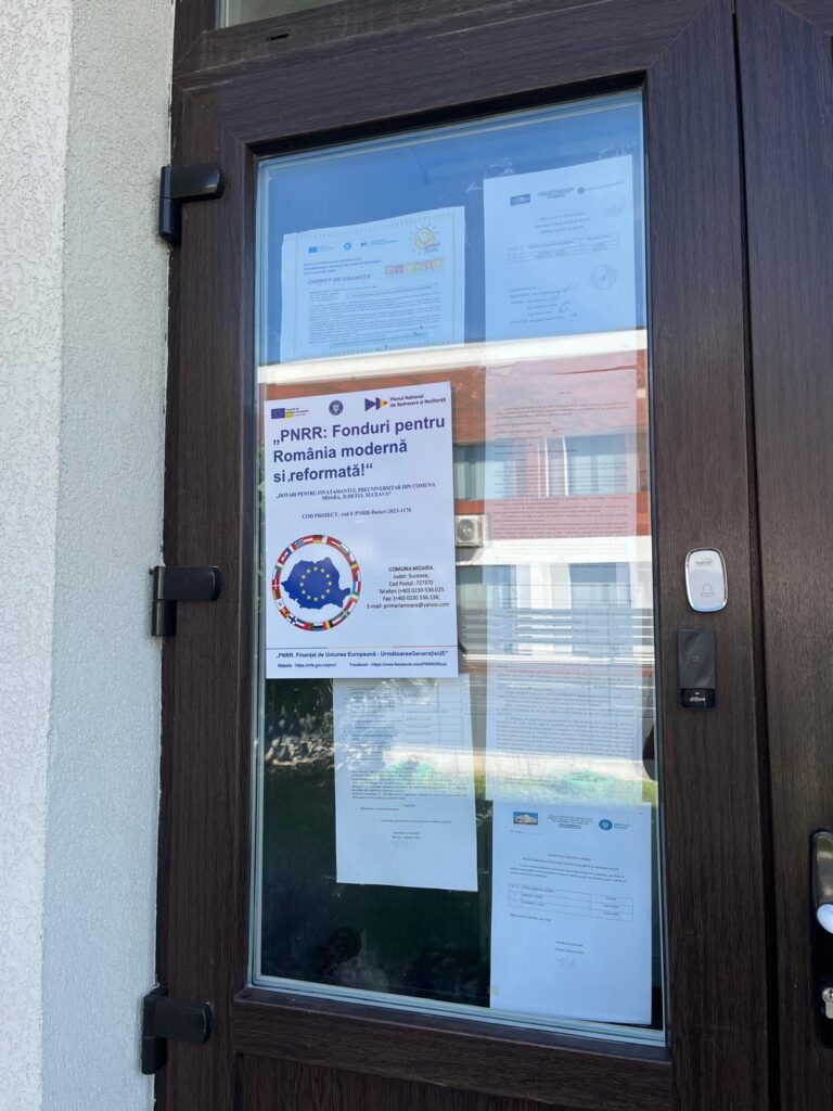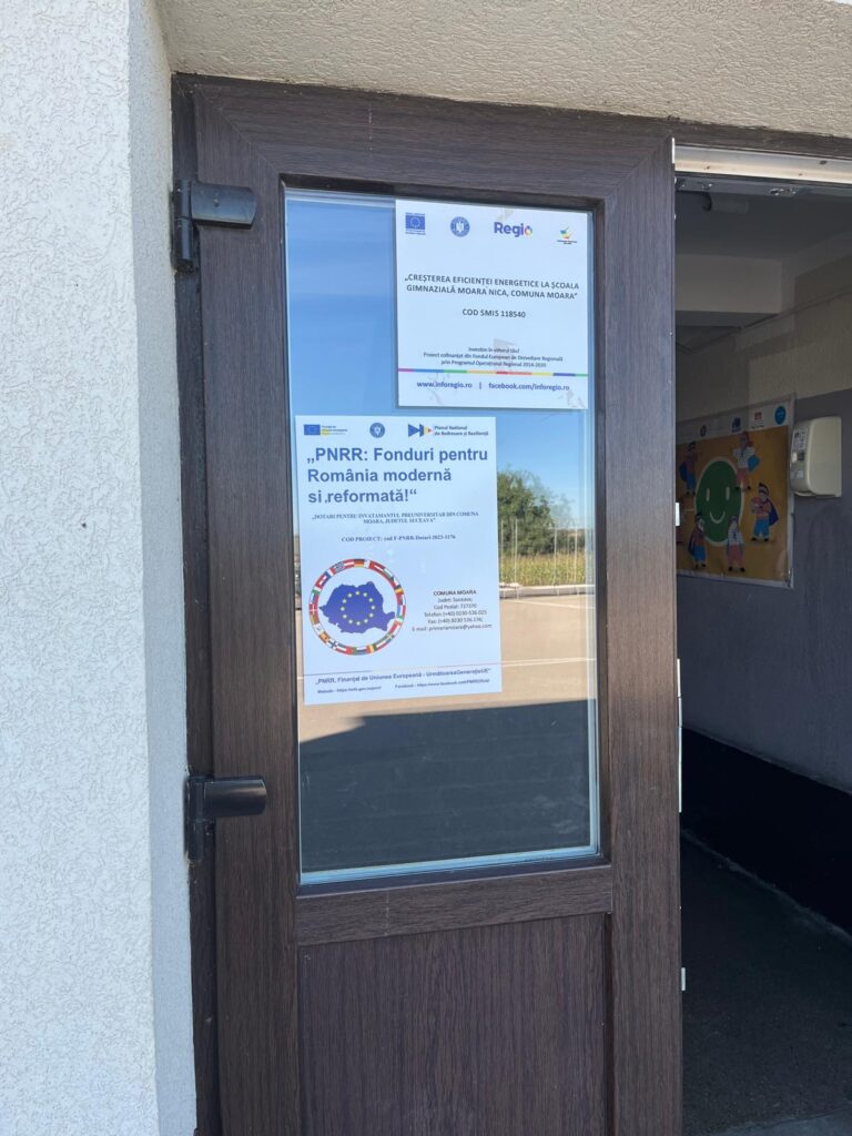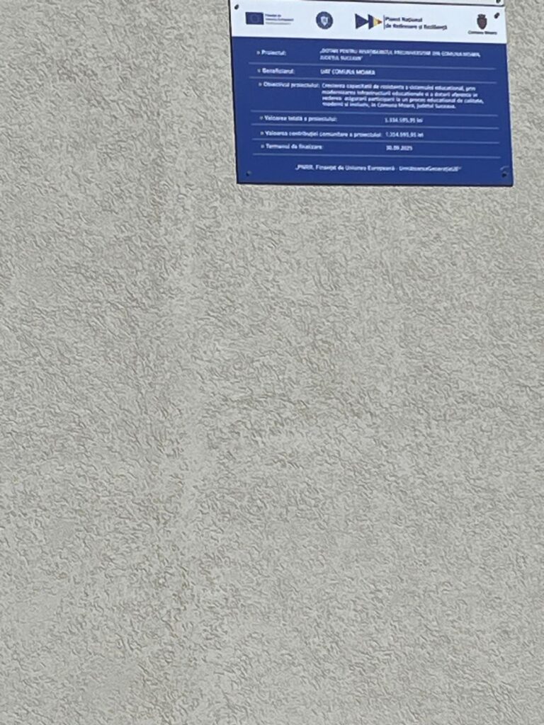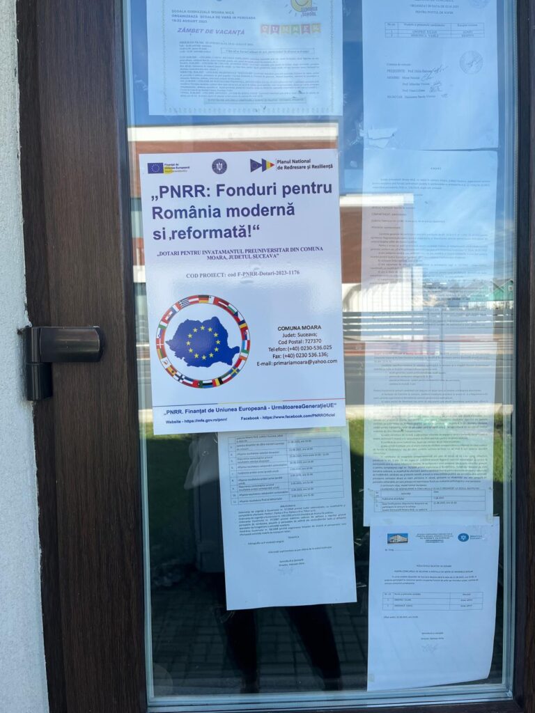 UAT COMUNA MOARA a finalizat proiectul ” Dotari pentru invatamantul preuniversitar pentru din Comuna Moara, judetul Suceava” , cod F-PNRR- 2023-1176, finanţat în cadrul Planului Național de Redresare si Reziliență (PNRR) – Componenta 15: Educație – Dotarea cu mobilier, materiale didactice și echipamente digitale a unităților de învățământ preuniversitar și a unităților conexe, prin contractul de finanțare nr. 1044DOT/2023/09.08.2023 încheiat între Unitatea Executivă pentru Finanțarea Învățământului Superior, a Cercetării, Dezvoltării și Inovării (UEFISCDI), în numele și pentru Ministerul Educației și Comuna MOARA.